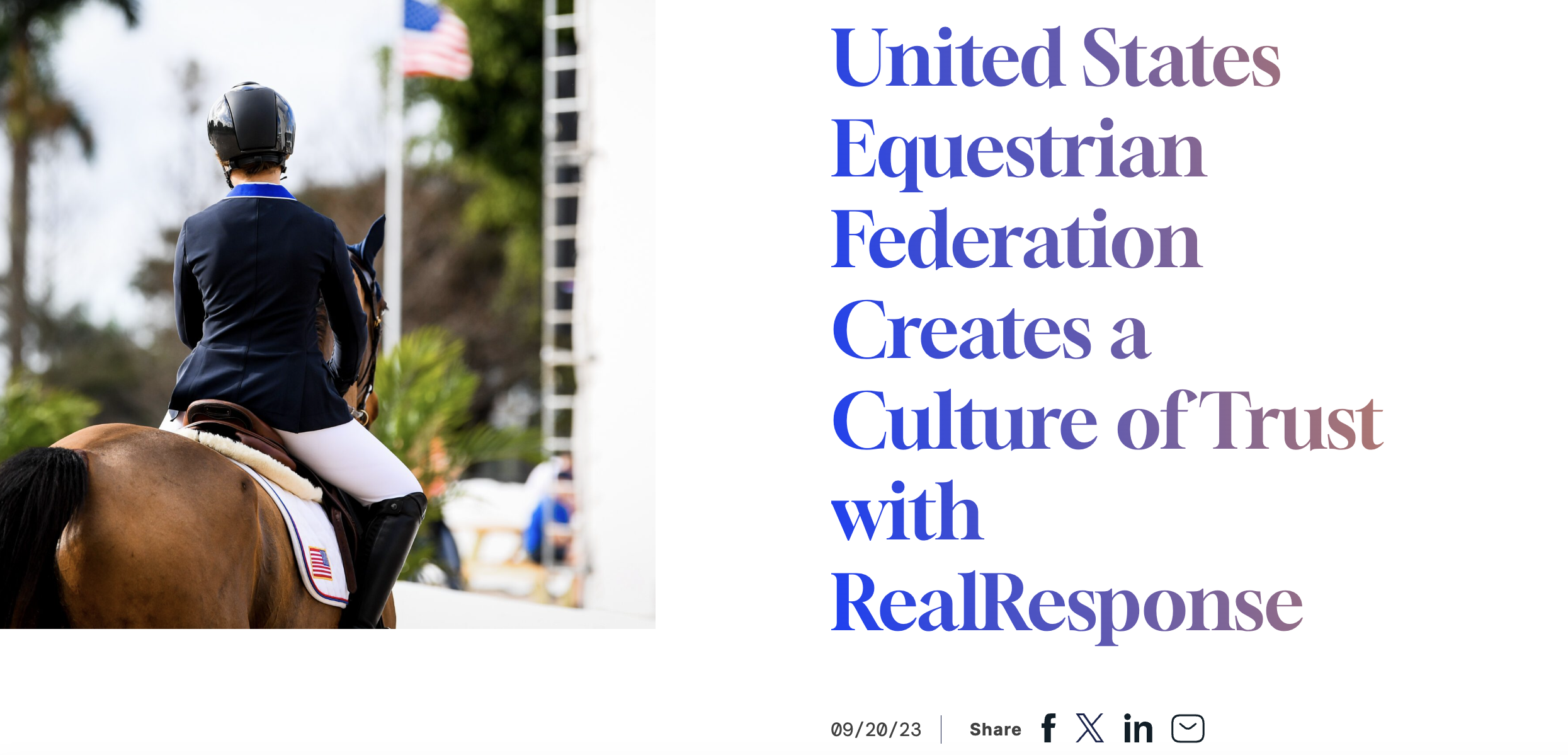 RealResponse Case StudiesWrote case studies examining the positive effects of RealResponse sports reporting technology within the US Equestrian Federation and USA Fencing.